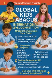 முத்தமிழ் சங்கம் மற்றும் குளோபள் கிட்ஸ் அபாகஸ் இணைந்து நடத்தும் பன்னாட்டு அபாகஸ் போட்டி