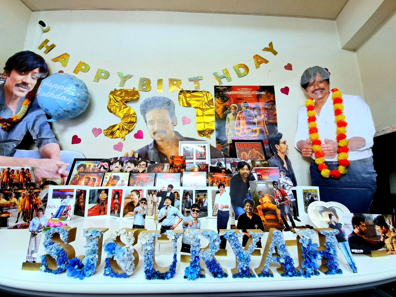 அவரது படங்களை பார்த்து ரசித்து விட்டுப் போவதுடன் நின்று விடாமல் எஸ்.ஜே சூர்யா இதுவரை நடித்த அவரது ஒவ்வொரு படங்களிலிருந்தும் அவரது புகைப்படங்கள், அவரது படங்களின் டிவிடிக்கள் அனைத்தையும் சேகரித்து, நவராத்திரி கொலு வைப்பது போல அடுக்கி வைத்து, இரண்டு புறமும் அவருடைய மினி கட் அவுட்டுகளையும் நிறுத்தி, அதற்கு மாலை போட்டு, நண்பர்கள் சகிதமாக வெகு விமர்சையாக எஸ்.ஜே சூர்யாவின் பிறந்தநாளை கொண்டாடியுள்ளார்கள். இது குறித்த புகைப்படங்கள் தற்போது சோசியல் மீடியாவில் வைரலாக பரவி வருகின்றன.