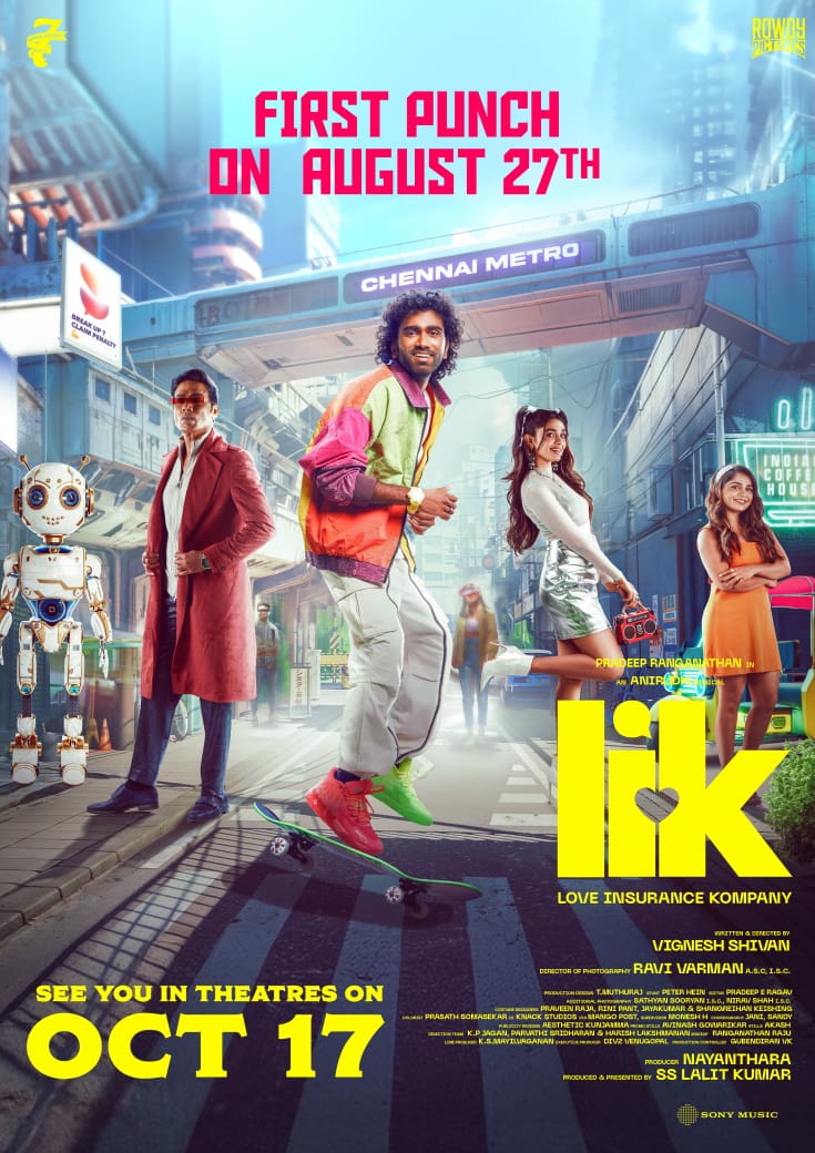 பிரபல இயக்குநரான விக்னேஷ் சிவன் இயக்கத்தில் உருவாகியுள்ள LIK ( ‘ லவ் இன்சூரன்ஸ் கம்பெனி’) திரைப்படத்தில் பிரதீப் ரங்கநாதன், கிருத்தி ஷெட்டி , எஸ். ஜே. சூர்யா, யோகி பாபு, கௌரி கிஷன், ஷா ரா ஆகியோர் முதன்மையான வேடங்களில் நடித்திருக்கிறார்கள். இவர்களுடன் செந்தமிழன் சீமான் சிறப்பு தோற்றத்தில் நடித்திருக்கிறார். ரவிவர்மன் ஒளிப்பதிவு செய்திருக்கும் இந்த திரைப்படத்திற்கு Rock Star அனிருத் இசையமைத்திருக்கிறார். படத்தொகுப்பு பணிகளை பிரதீப் ஈ. ராகவ் மேற்கொள்ள கலை இயக்கம் மற்றும் தயாரிப்பு வடிவமைப்பு பணிகளை டி. முத்துராஜ் மேற்கொண்டிருக்கிறார். ஃபேமிலி என்டர்டெய்னராக தயாராகி இருக்கும் இந்த திரைப்படத்தை ரௌடி பிக்சர்ஸ் நிறுவனம் சார்பில் தயாரிப்பாளர் நயன்தாரா தயாரித்திருக்கிறார். மேலும் இந்த திரைப்படத்தை செவன் ஸ்கிரீன் ஸ்டுடியோ நிறுவனம் சார்பில் தயாரிப்பாளர் எஸ். எஸ். லலித்குமார் தயாரித்து, வழங்குகிறார்.