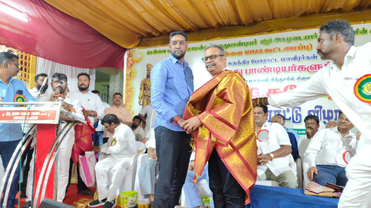 ஆந்திர மாநிலம் சித்தூரில் மாமன்னர் மருதுபாண்டி சகோதரர்களுக்கு சிலை நிறுவிய ஆந்திர மாநில முதலியார் நலன் மற்றும் மேம்பாட்டுச் சங்கத்தின் முன்னாள் தலைவரும், ஆந்திர மாநில முதலியார் நலன் மற்றும் மேம்பாட்டுச் சங்கத்தின் தலைவருமான புல்லட் டி.ஜி .சுரேஷ் அவர்களுக்கு பாராட்டு விழா சென்னை கோடம்பாக்கம் அன்னை அஞ்சுகம் திருமண மண்டபத்தில் நடைபெற்றது .