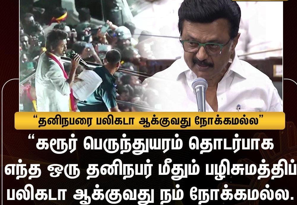 “கரூர் பெருந்துயரம் – எந்த ஒரு தனிநபர் மீதும் பழிசுமத்திப் பலிகடா ஆக்குவது நம் நோக்கமல்ல” -முதலமைச்சர் மு.க.ஸ்டாலின் NewsPoliticalTamilnadu By NBA 24X7 On Oct 15, 2025 60 Share 60 Share