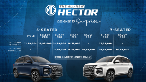 The All-New Hector comes with the unique car ownership program “MG SHIELD,” offering after-sales service options. Customers will also benefit from the standard 3+3+3 package, including a three-year warranty with unlimited kilometers, three years of Roadside Assistance, and three labour-free periodic services. The owners of The All-New Hector can also customize their coverage by extending the warranty or roadside assistance or opting for the Protect plans, the company’s pre-paid maintenance packages for added peace of mind and a stress-free ownership experience.