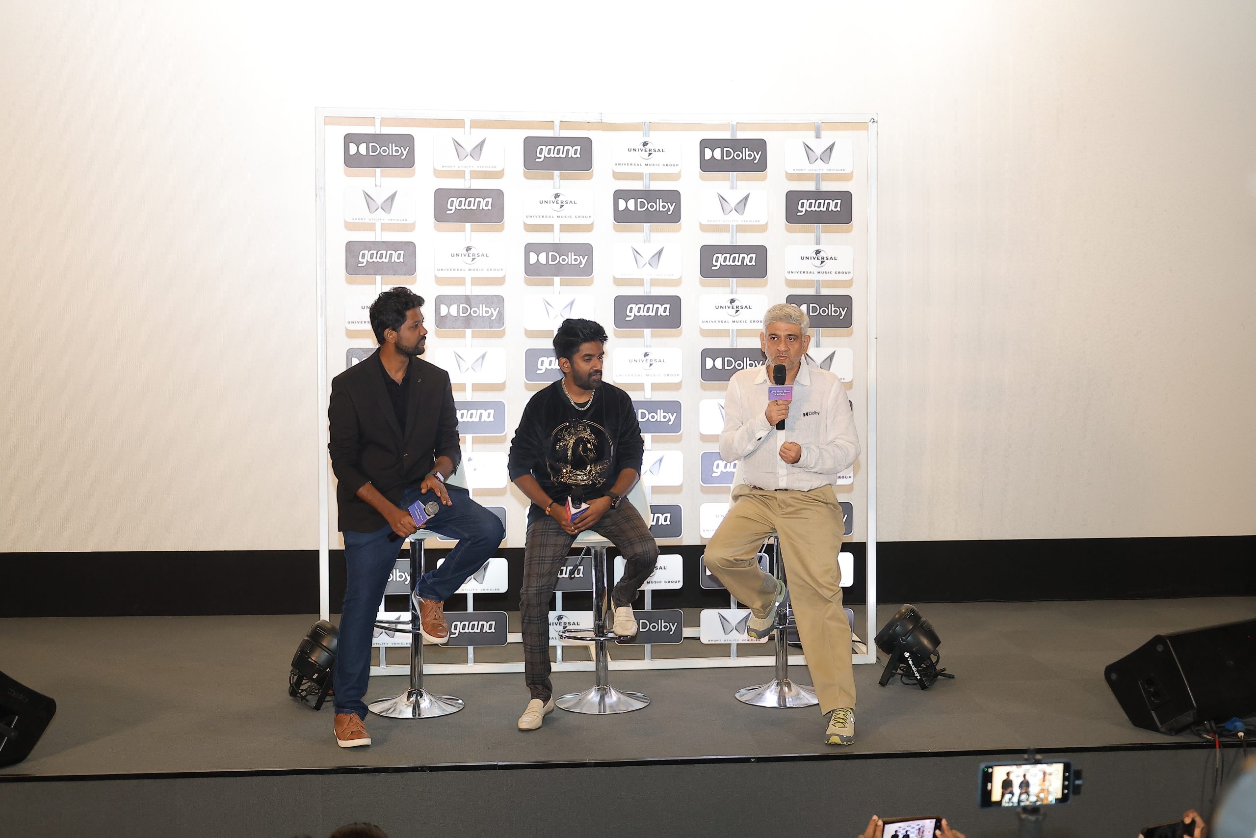 This is followed by a media interaction with Dharan Kumar, along with representatives from Universal Music Group, Gaana and Dolby, discussing the creative process and the impact of immersive sound on music production.
