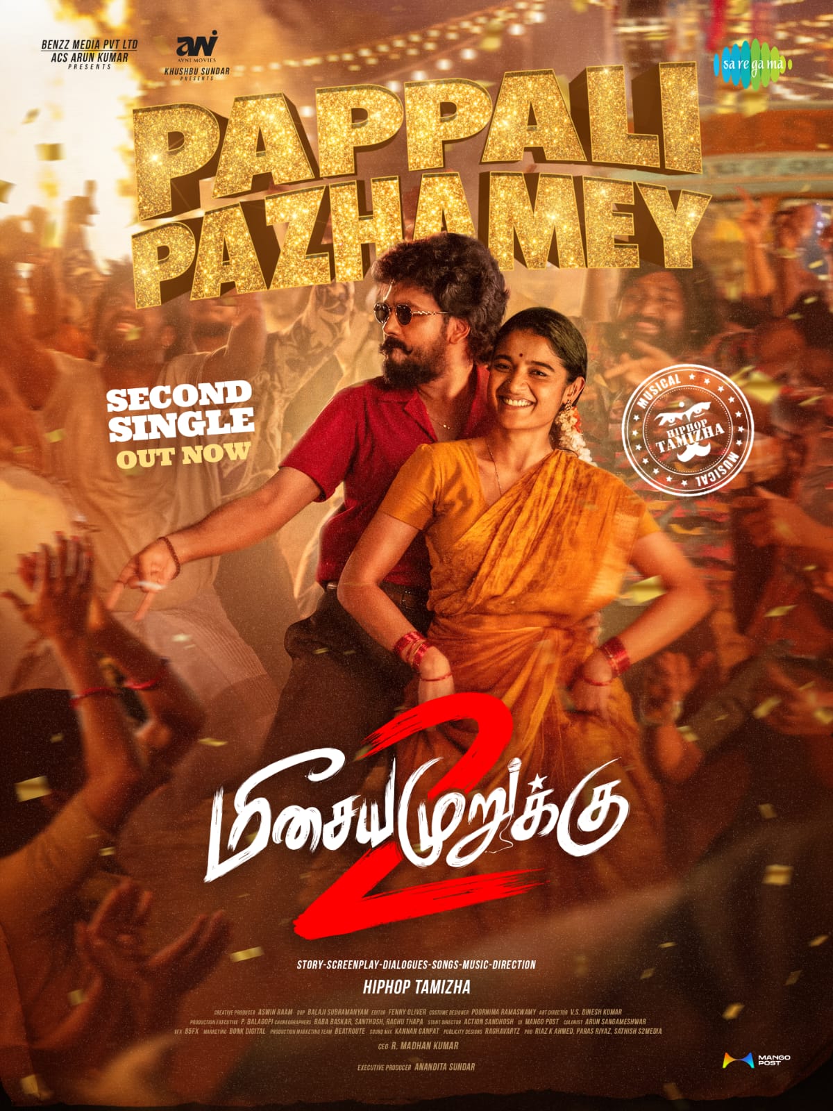 ஹிப்ஹாப் தமிழா கதை, திரைக்கதை, வசனம், இயக்கம் என சகல துறைகளிலும் கால் பதித்து வெளிவந்த திரைப்படம் “மீசைய முறுக்கு”. சுந்தர்.சி தயாரித்திருந்த இப்படம் 2017-இல் வெளியான இப்படம் மிகப்பெரிய வெற்றியைப் பெற்றது. இந்நிலையில், தற்போது ஹிப்ஹாப் தமிழா கதை- திரைக்கதை-வசனம்- இயக்கத்தில் “மீசைய முறுக்கு-2” படம் உருவாகி வருகிறது. இப்படத்தில் ஹிப்ஹாப் தமிழா ஆதி, பாலிவுட் நடிகை கேட்டிகா சர்மா, சைத்ரா ஜே. ஆச்சார், யோகி பாபு, கருணாஸ், ஹர்ஷத் கான் , ‘ஆடுகளம்’ நரேன், நாசர், ரம்யா ரங்கநாதன், ஷா ரா உள்ளிட்ட பலர் நடித்திருக்கிறார்கள். பாலாஜி சுப்பிரமணியம் ஒளிப்பதிவு செய்திருக்கும் இந்த திரைப்படத்திற்கு ஹிப்ஹாப் தமிழா இசையமைத்திருக்கிறார். கமர்சியல் என்டர்டெய்னராக தயாராகி இருக்கும் இந்த திரைப்படத்தை பென்ஸ் மீடியா பிரைவேட் லிமிடெட் மற்றும் அவ்னி மூவிஸ் ஆகிய நிறுவனங்கள் சார்பில் தயாரிப்பாளர்கள் ஏ.சி.எஸ் அருண்குமார் மற்றும் குஷ்பூ சுந்தர் ஆகியோர் இணைந்து தயாரித்திருத்துள்ளனர்.