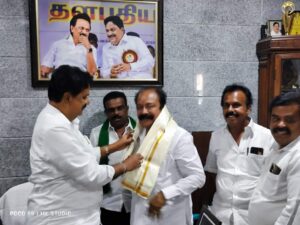 கிருஷ்ணகிரி நாடாளுமன்ற தொகுதியில் இந்தியா கூட்டணி சார்பாக களம் காணும் இந்திய தேசிய காங்கிரஸ் கட்சியின் வேட்பாளர் திரு.K.கோபிநாத்.,EX MLA,அவர்கள் திமுக மாவட்ட செயலாளர் மதியழகன் அவர்களை சந்தித்து தேர்தல் வீயூகம் குறித்து பேசினார்.கோபிநாத் அவர்களை வரவேற்று திமுக ஆதரவோடு பெரும் வெற்றி பெற்று மக்களவையில் களமாட வாழ்த்தினார்.